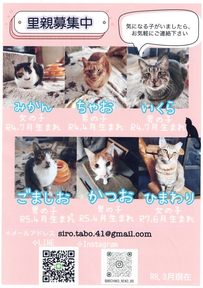 ブログ 猫 猫の里親募集のお知らせ New! Permalink 2026年4月 5日 21:02 ページで読む 猫ちゃんの里親さん募集 Permalink 2023年10月28日 16:46 猫ちゃんの里親さんを募集しています。 続きを読む 地域猫の不妊手術について Permalink 2023年9月17日 16:38 当院では飼い猫さん以外にも、家族のいない地域猫の不妊手術も行っております。 続きを読む 譲渡会のお知らせ Permalink 2023年9月 5日 16:35 猫ちゃんの譲渡会が行われます。 続きを読む 猫ちゃんの里親さん募集 Permalink 2023年2月24日 09:30 猫ちゃんの里親さんを募集しています。 続きを読む 猫ちゃんの飼い主様、里親さんを探しています。 Permalink 2023年2月20日 10:08 保護された猫ちゃんがいます。 続きを読む 猫ちゃんの里親さん募集 Permalink 2022年11月30日 18:17 猫ちゃんを多頭保護され、お世話をしている方がいらっしゃいます。 続きを読む 猫の里親さん募集 Permalink 2022年10月29日 19:38 猫ちゃんの里親さんを募集しております。 続きを読む 猫の里親さん募集 Permalink 2022年10月29日 19:29 猫ちゃんの里親さんを募集しています。 続きを読む 子猫ちゃんの里親さん募集 Permalink 2022年8月 2日 12:33 子猫ちゃんの里親さんを募集しています。 続きを読む 記事検索 検索 カテゴリー 動物医療 [5] 健康管理 [14] 犬 [9] 兎 [1] 猫 [24] 小鳥 [1] フェレット ハムスター モルモット [1] 里親・迷子のご案内 [45] その他 [12] 月別アーカイブ ▼月を選択... ● 2026年4月[1] ● 2025年2月[1] ● 2025年1月[1] ● 2024年11月[1] ● 2024年7月[1] ● 2024年5月[1] ● 2023年10月[1] ● 2023年9月[2] ● 2023年6月[1] ● 2023年2月[3] ● 2022年11月[1] ● 2022年10月[3] ● 2022年8月[2] ● 2022年1月[1] ● 2021年10月[2] ● 2021年9月[1] ● 2021年7月[1] ● 2020年10月[1] ● 2020年9月[2] ● 2020年3月[1] ● 2020年2月[3] ● 2019年12月[2] ● 2019年10月[2] ● 2019年9月[4] ● 2019年6月[1] ● 2019年5月[1] ● 2019年1月[1] ● 2018年11月[2] ● 2018年9月[1] ● 2018年8月[2] ● 2018年7月[4] ● 2018年6月[1] ● 2018年5月[3] ● 2018年3月[1] ● 2018年2月[2] ● 2018年1月[1] ● 2017年11月[2] ● 2017年10月[1] ● 2017年8月[2] ● 2017年7月[3] ● 2017年6月[2] ● 2017年5月[2] ● 2017年4月[1] ● 2017年2月[1] ● 2017年1月[3] ● 2016年12月[1] ● 2016年9月[2] ● 2016年8月[1] ● 2016年6月[1] ● 2016年5月[1] ● 2016年4月[2] ● 2016年2月[1] ● 2015年11月[3] ● 2015年9月[3] ● 2015年8月[2] ● 2015年7月[1] ● 2015年6月[2] ● 2015年4月[1] ● 2015年3月[4] ● 2015年1月[2] ● 2014年12月[5] ● 2014年11月[2] ● 2014年10月[1] ● 2014年9月[2] ● 2014年8月[1] さくらい動物クリニック 3つの特徴 1