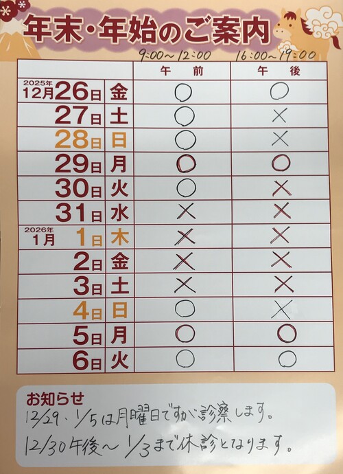 2025.4.1より毎週月曜日の診察を休止させていただきます。